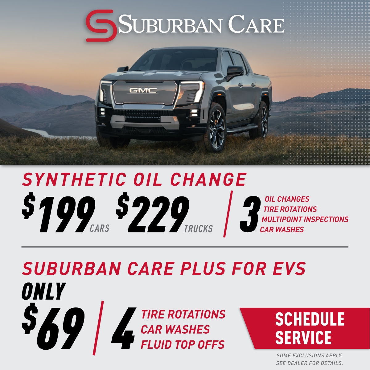 Suburban Care makes it easy to stay on top of your vehicle's most crucial maintenance needs. It helps protect your car or truck, improves performance, and lets you enjoy worry-free driving all year round.