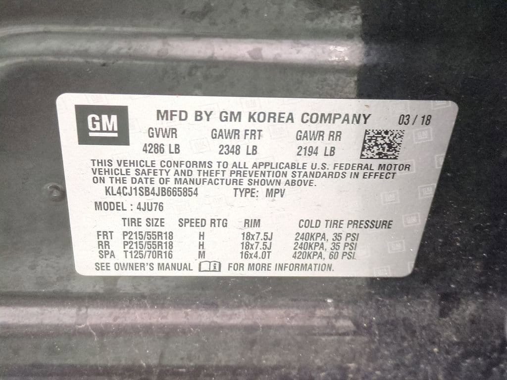 Vin Number: KL4CJ1SB4JB665854