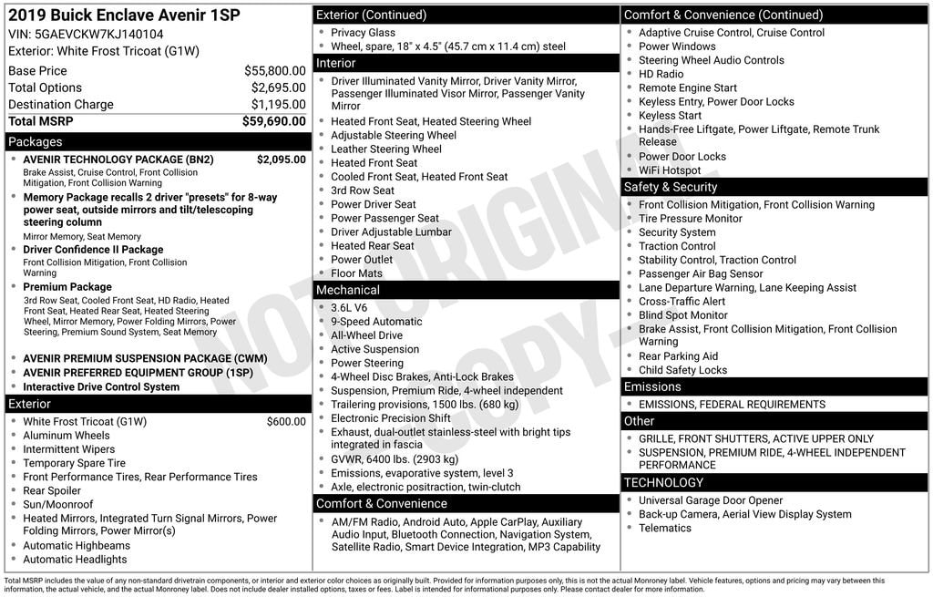 Elevate your driving experience with the 2019 Buick Enclave Avenir. This exceptional SUV combines style, power, and cutting-edge technology to create a truly remarkable vehicle. Visit our showroom today and let us demonstrate why the Enclave Avenir is the perfect choice for your next adventure.