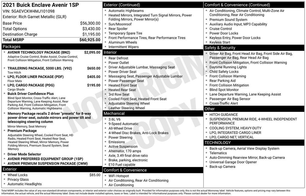 Whether you're embarking on a family adventure, towing a trailer, or simply commuting in style, this 2021 Buick Enclave Avenir is the perfect companion. Its combination of capability, comfort, and refinement is unmatched in the segment.