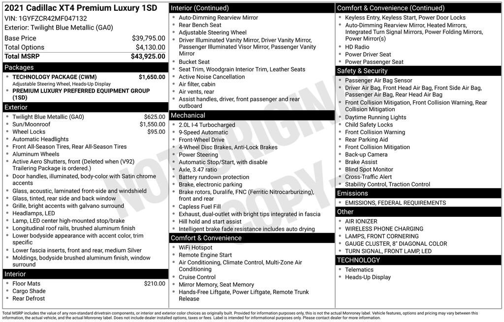 View this 2021 CADILLAC XT4 SUV Premium Luxury for sale at Suburban Buick GMC of Troy in Michigan.
