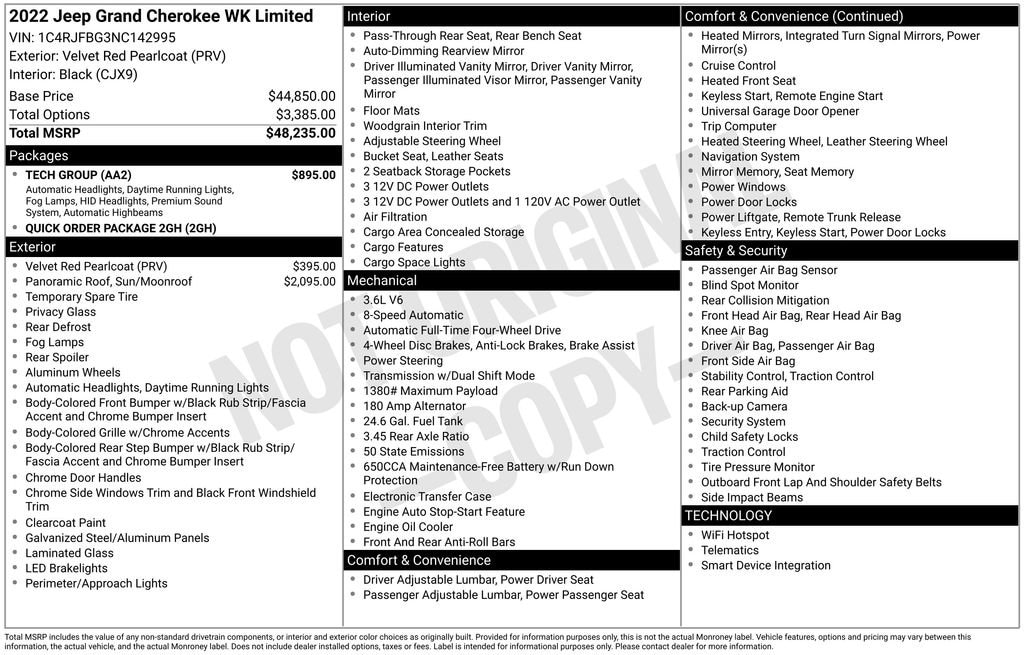 The 2022 Jeep Grand Cherokee WK Limited in Velvet Red Pearlcoat with a Black interior is a bold and refined SUV that combines rugged capability with upscale comfort. This version of the Grand Cherokee carries on the classic WK body style, distinct from the redesigned 2022 Grand Cherokee, offering a familiar and proven platform for those who value traditional Jeep styling and performance.