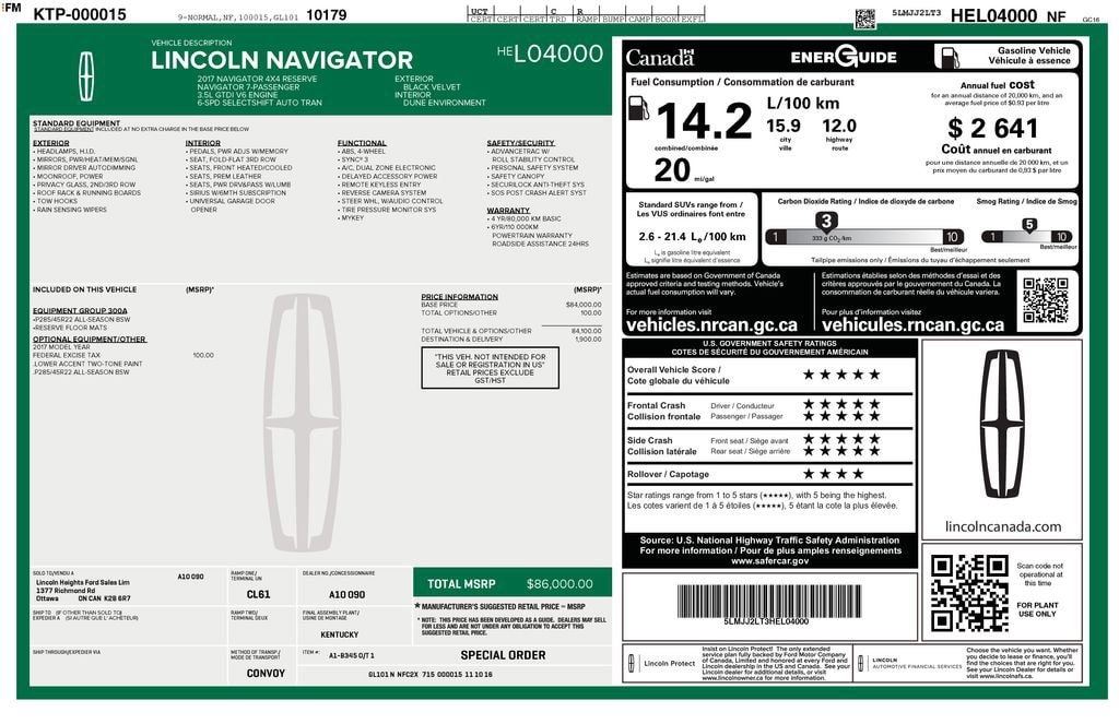 Boasting a powerful V6 engine and 4-wheel drive, this Navigator Reserve delivers an impressive performance, while its spacious and well-appointed interior offers unparalleled comfort and convenience. From the luxurious leather-wrapped steering wheel to the advanced SYNC 3 infotainment system, every detail has been carefully crafted to provide you with an exceptional driving experience.