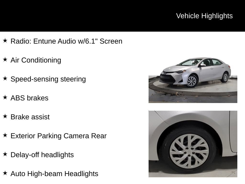 Powered by a reliable 1.8L I4 DOHC engine and paired with a smooth-shifting CVT transmission, this Corolla delivers an impressive 28 city/36 highway MPG, ensuring you'll spend less time at the pump and more time on the open road.